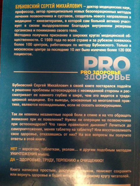 Когда я был в декабре в Москве, мне один очень успешный человек порекомендовал обратиться к профессору Сергею Бубновскому, который по его словам творит чудеса излечения спины и суставов.